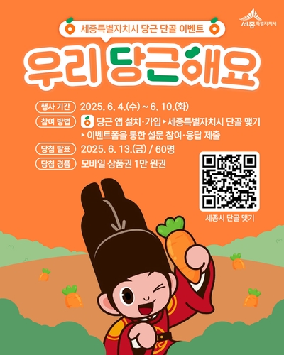 세종특별자치시(시장 최민호)가 지역 기반 커뮤니티 플랫폼 당근(마켓)의 '세종시 공공프로필' 개설을 기념하며 단골 맺기 이벤트를 진행한다고 4일 밝혔다.
